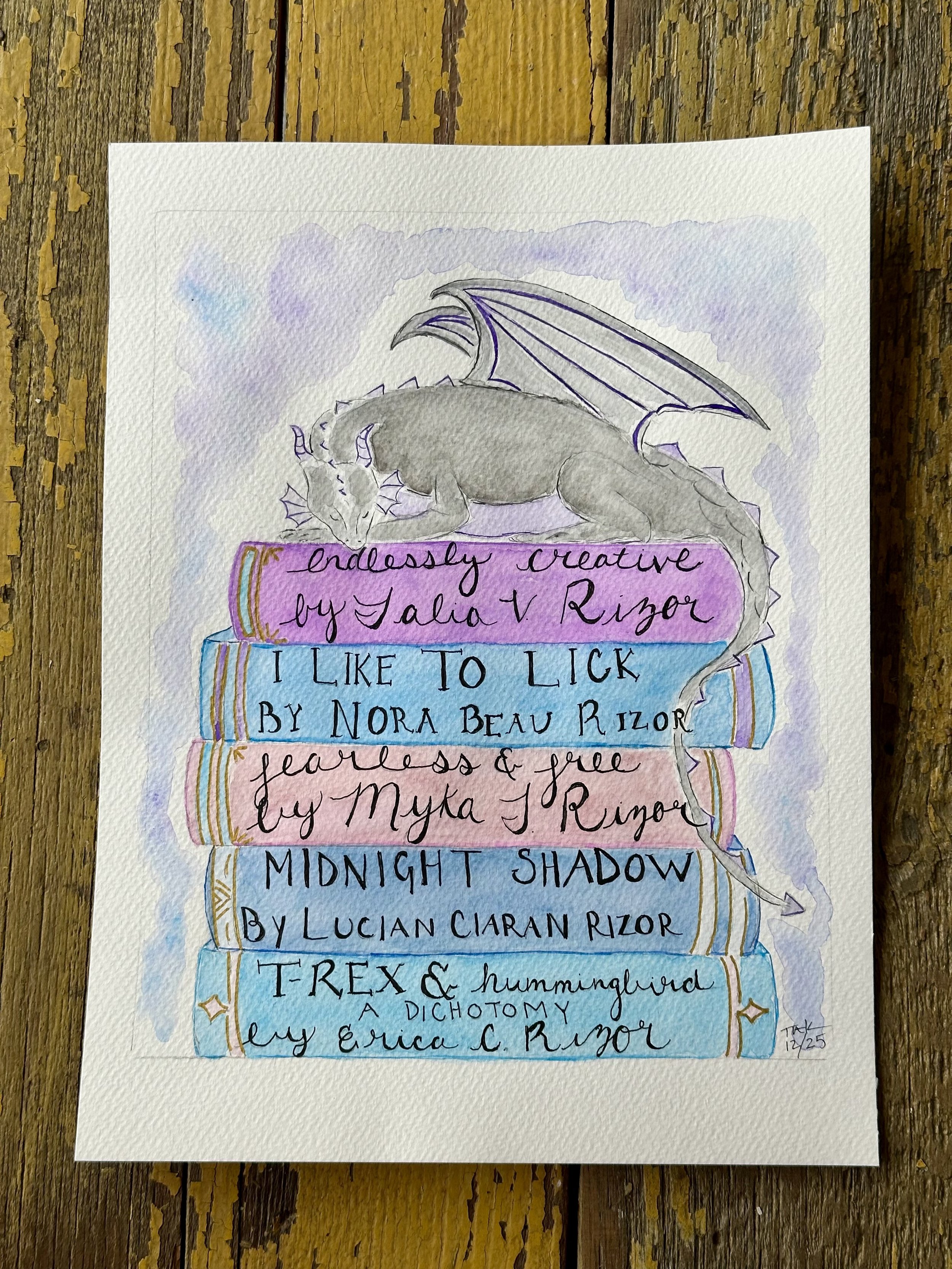 Pricing for commissioned watercolor minis (2” x 3” - ish) begin at $30, 5”x7” and larger begin at $55.