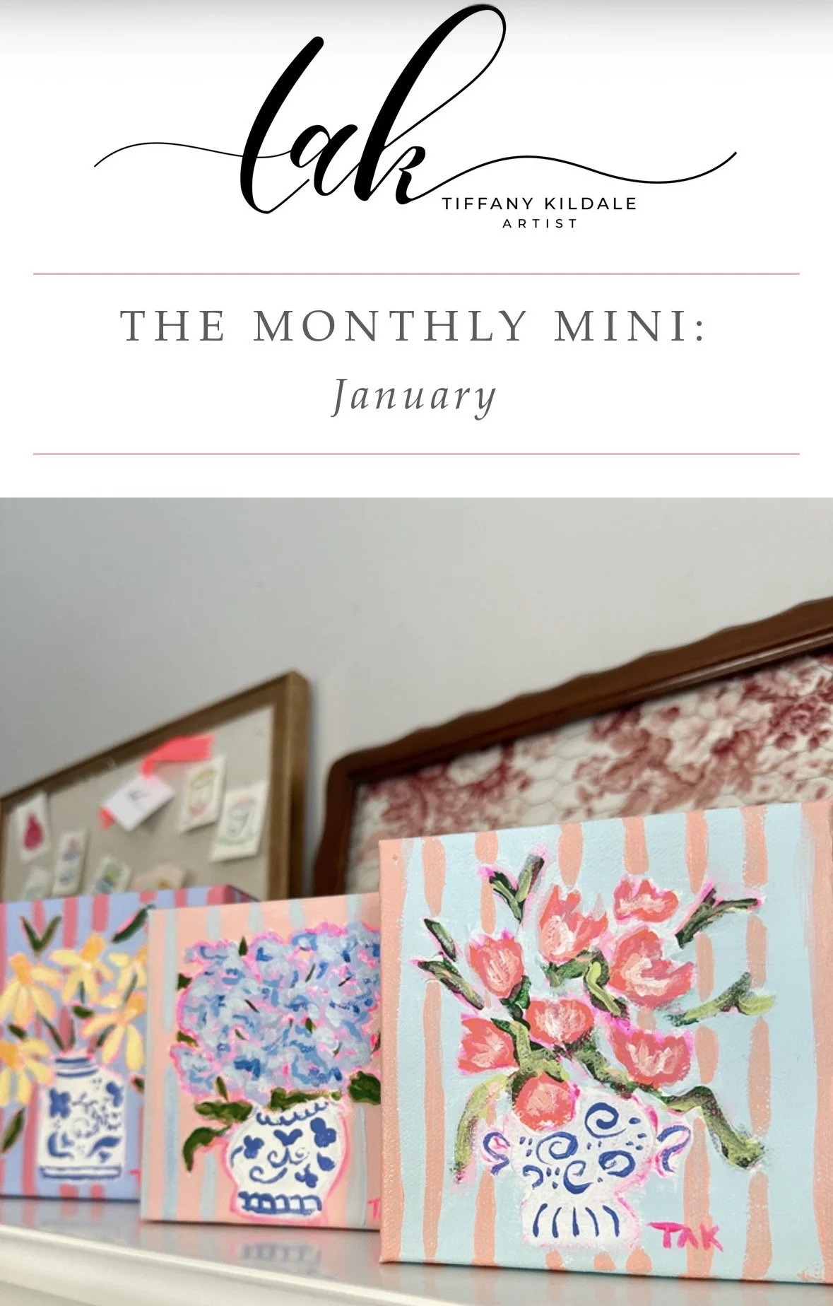 The Monthly Mini is a bite-sized monthly studio update on new releases, upcoming events and markets, and a complimentary ready-to-paint sketch emailed to you every month. Just print, and paint!